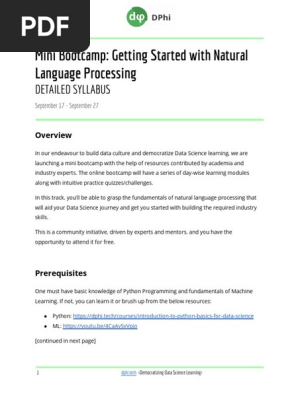 Mini Bootcamp Getting Started With Natural Language Processing Detailed Syllabus Pdf Systems Science Behavior Modification